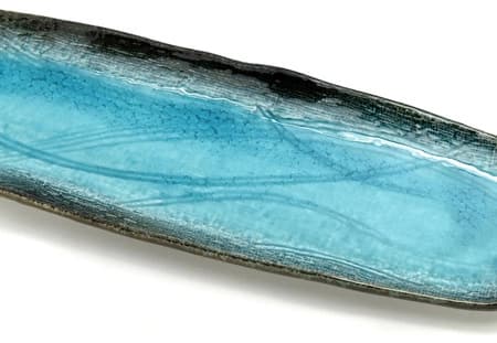 El plato de cerámica para sushi Kobaruto combina funcionalidad y diseño artístico, perfecto para los amantes de la cocina asiática y el estilo moderno. Este elegante plato, de 34 cm x 10 cm, está elaborado con cerámica de alta calidad , lo que garantiza su durabilidad y seguridad . Presenta hermosos tonos azules que crean sutiles degradados en su superficie, otorgando a cada pieza un carácter único e irrepetible.
